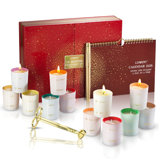 2025 Advent Calendar Candle Gifts - 12pc Aromatherapy Scented Candles, Pen & Calendar