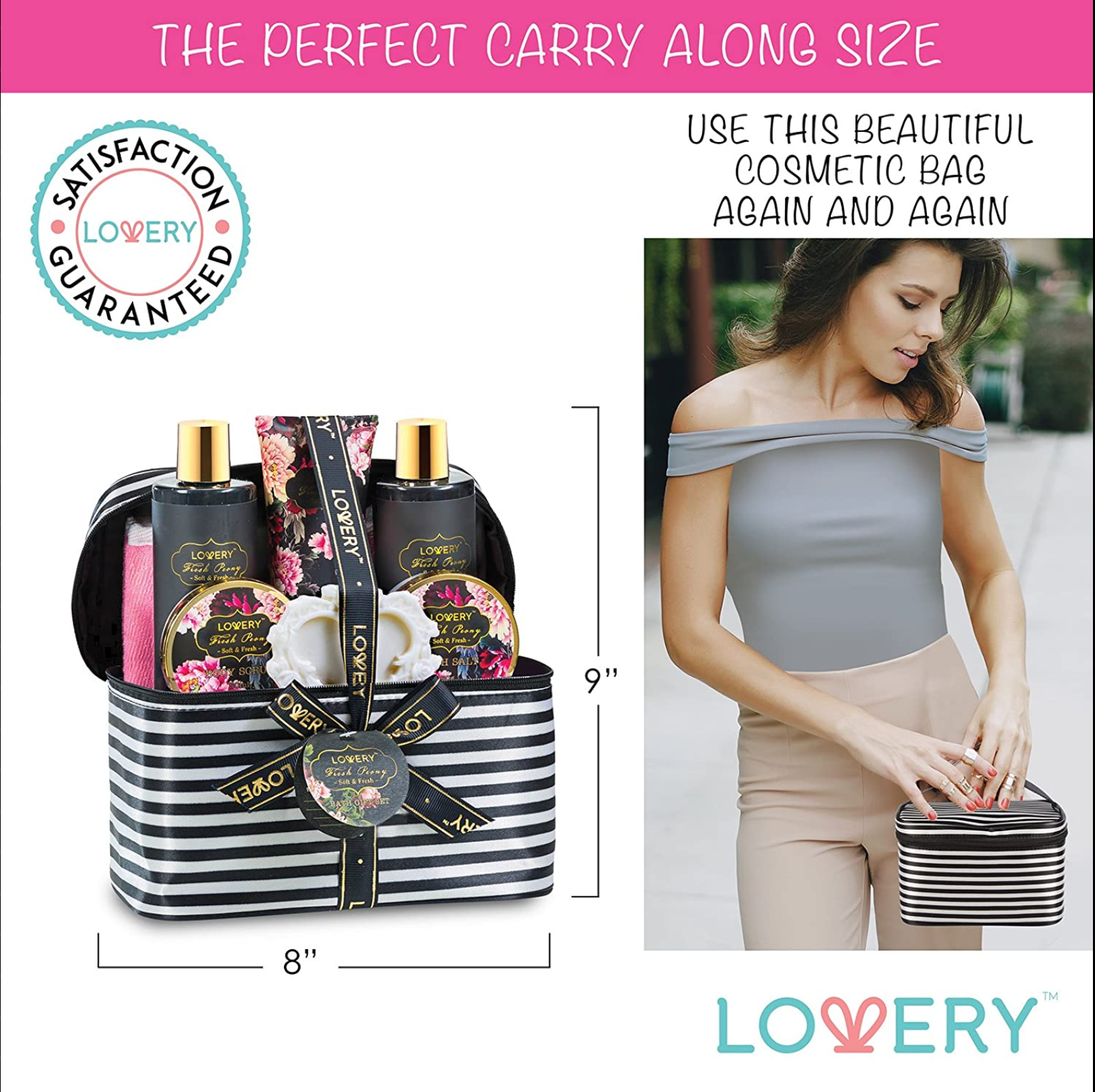 Fresh Peony Spa Gift Basket - 13Pc Deluxe Self Care Cosmetic Bag