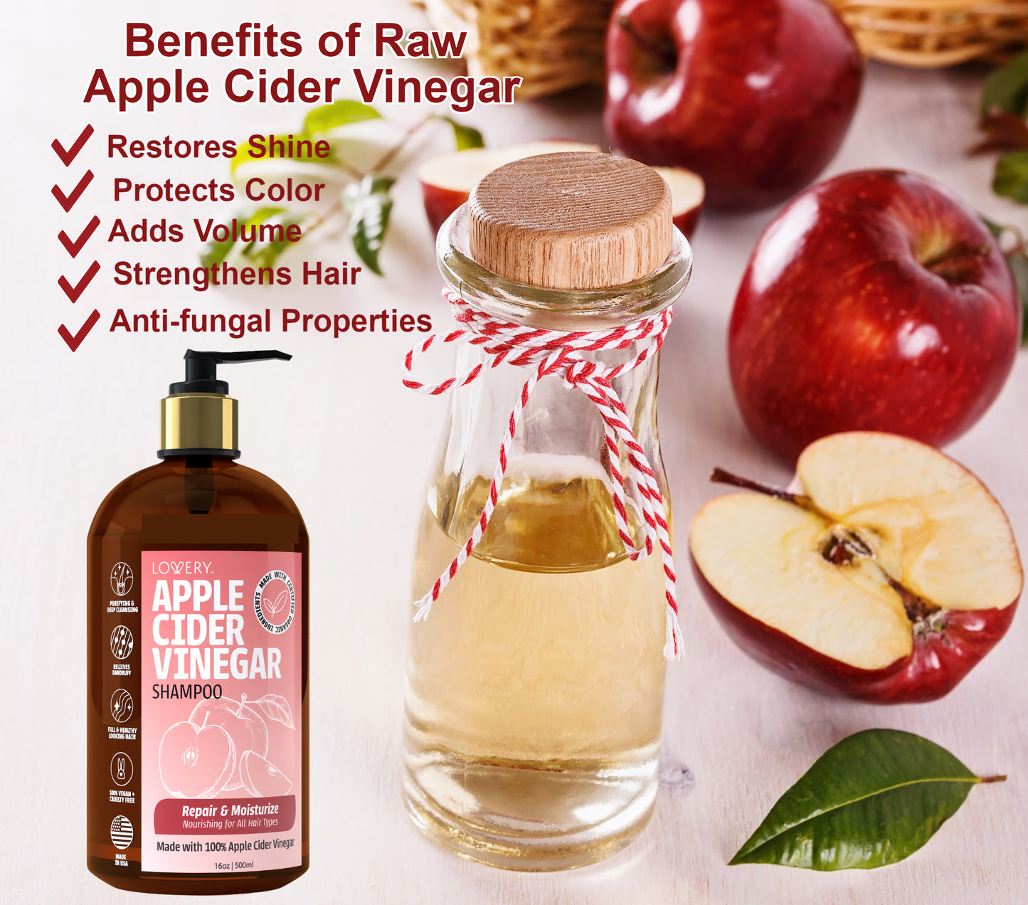 The Apple Cider Vinegar hair care shampoo helps fight dandruff and scalp build-ups, while also moisturizing and hydrating the hair, leaving it feeling healthy and refreshed. Formulated with a cocktail of essential oils composed of raw apple cider vinegar, vitamin e, aloe vera, jojoba oil. They are known for soothing properties and constitute an anti breakage complex of the hair fiber for repaired hair. Raw Apple Cider Vinegar restores skin’s normal Ph. A replenishing detox that helps remove sebum and clears dead skin cells for a deeper cleanse.