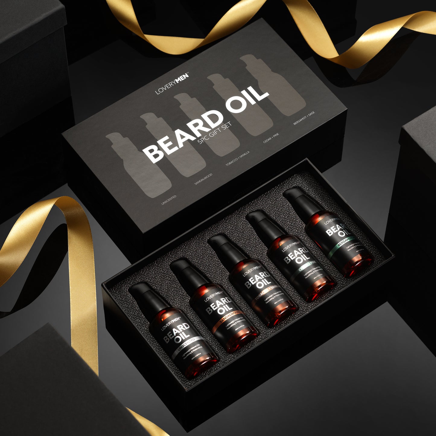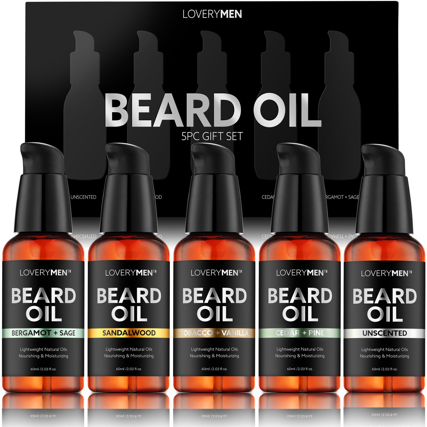 LoveryMen Deluxe Beard Oils - 5pc Beard Softener Grooming Gift Set