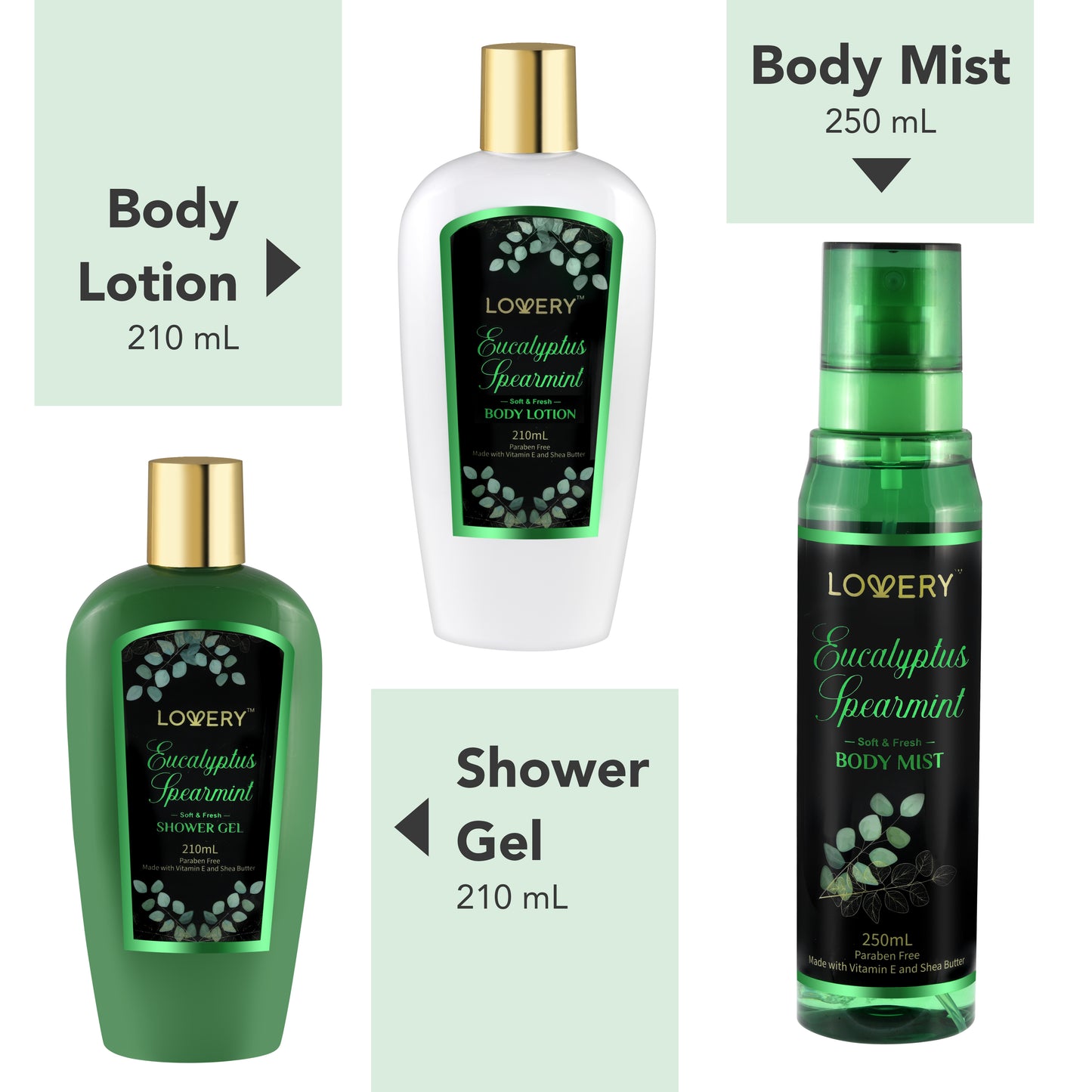Indulge your senses in a deluxe scent while adding a natural glow to your skin as our Eucalyptus Bath Kit is powered with Eucalyptus Spearmint Infused with eucalyptus oil. These bath and body cosmetics are not only beautiful but rich in antioxidants and essential fatty acids. Known for their soothing properties,