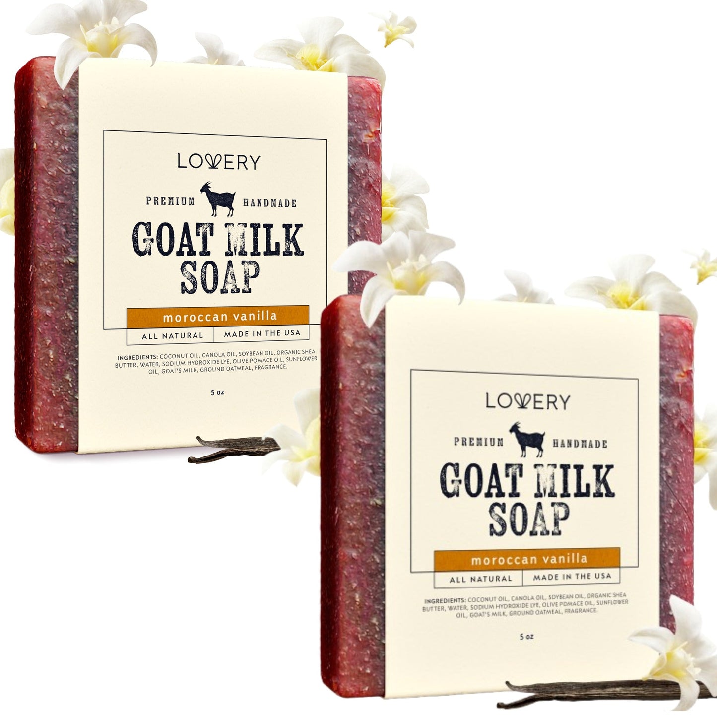 Handmade Goat Milk Soap Bars with Organic Shea Butter - 2 Pack 5oz Moroccan Vanilla Scent Made in USA