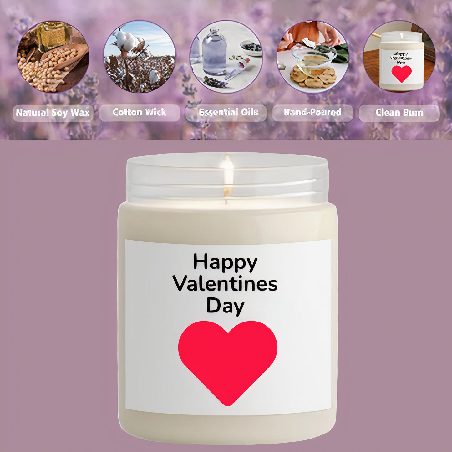 "Happy Valentines Day" Candle - 10oz Vanilla Scented Soy Wax Candle