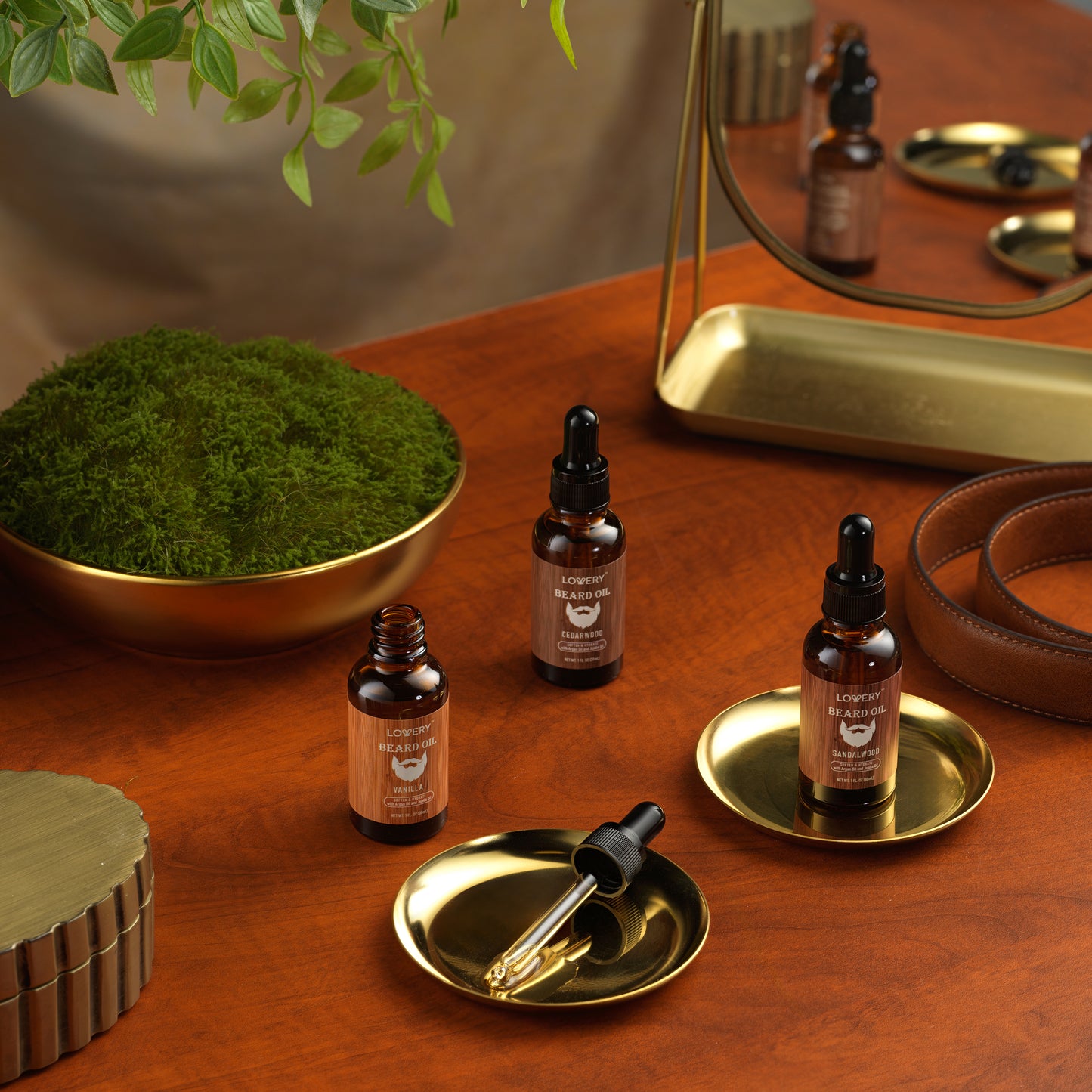 A perfect present for the bearded gentleman in your life, elegantly packaged in a premium wooden box ready for gifting, this set makes a thoughtful present for birthdays, fathers day, holidays, or any occasion that calls for a touch of luxury. - Enjoy the warm, refined aromas of Vanilla, Cedarwood, and Sandalwood, each crafted to enhance your grooming routine. In addition these beard oils are infused with Argan Oil and Jojoba Oil to nourish hair follicles and support thicker, fuller beard growth. In addition, they are cruelty free and paraben free. Each gift box includes 3 beard oils in Cedarwood, Sandalwood and Vanilla fragrances. All three bottles come with a dropper for easy and no spill use. These men beard oil bottles are the perfect size for compact storage and traveling.