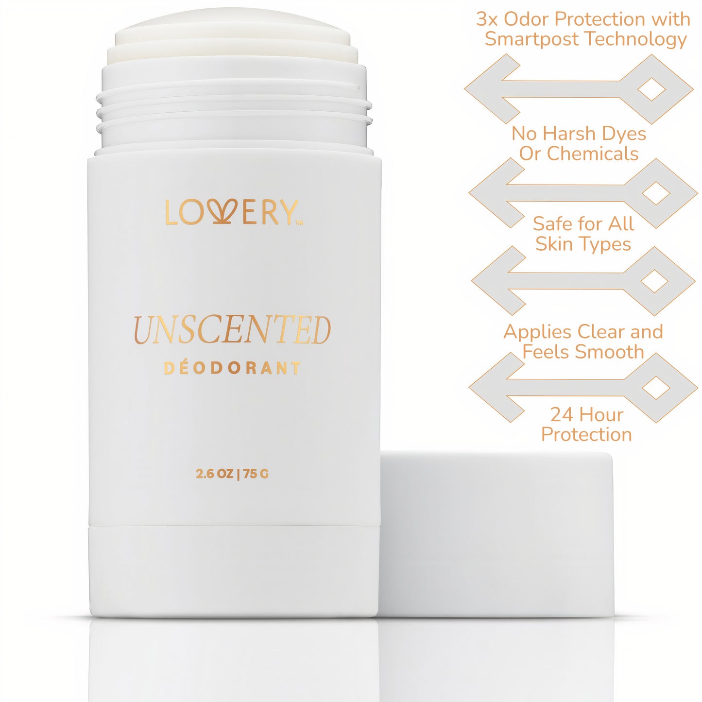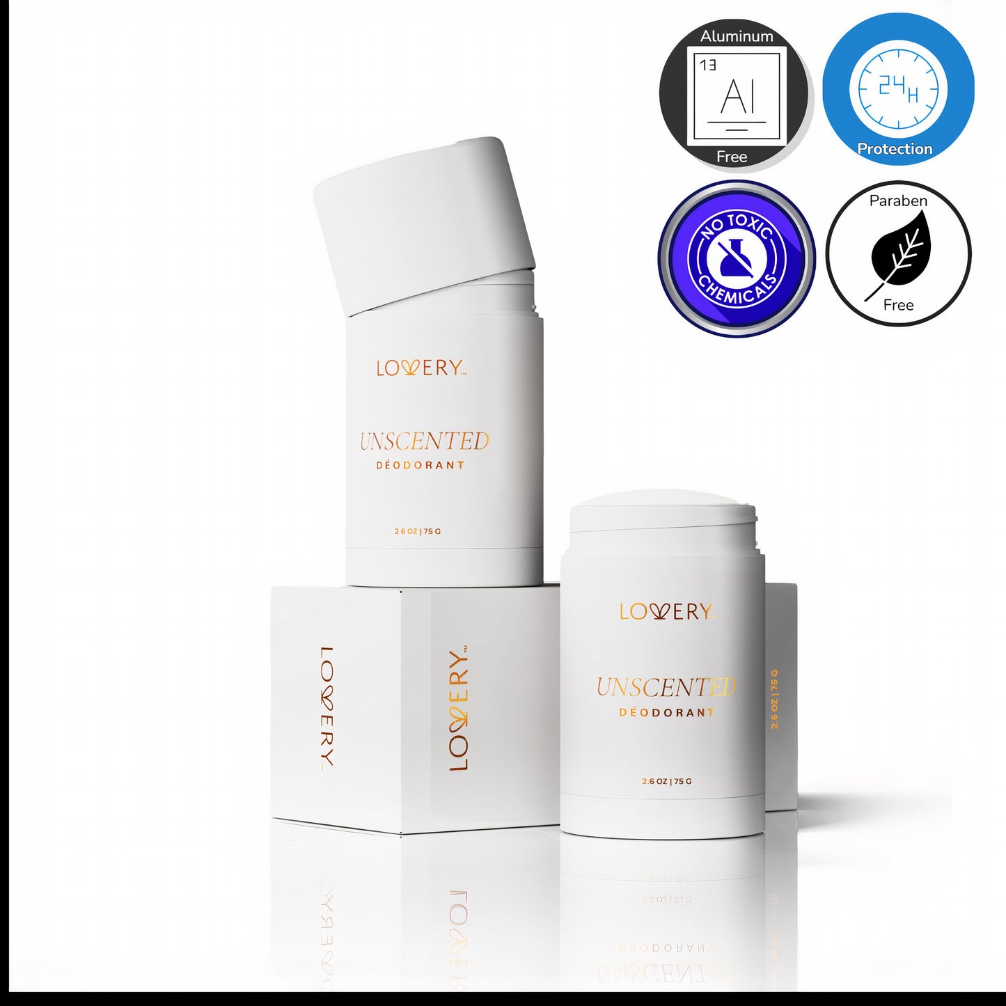 Whether you’re navigating a busy workday or enjoying a quiet evening, LOVERY’s Unscented Deodorant Stick stands up to the demands of modern life, giving you all-day peace of mind. Embrace the beauty of simplicity and gentle protection with LOVERY.* 75g Womens Unscented Deodorant Stick